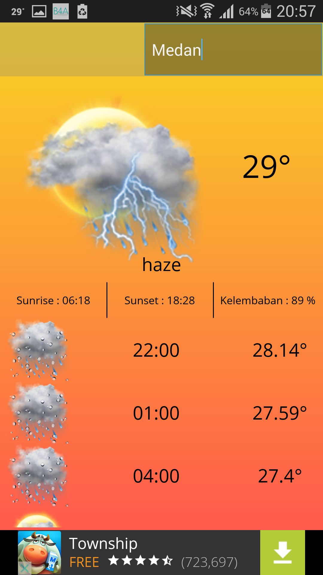 تم تطوير هذا التطبيق لتسهيل معرفة الطقس في إندونيسيا ، بالإضافة إلى تقدير الطقس الحالي ، هناك أيضًا توقعات للساعات القليلة المقبلة.
